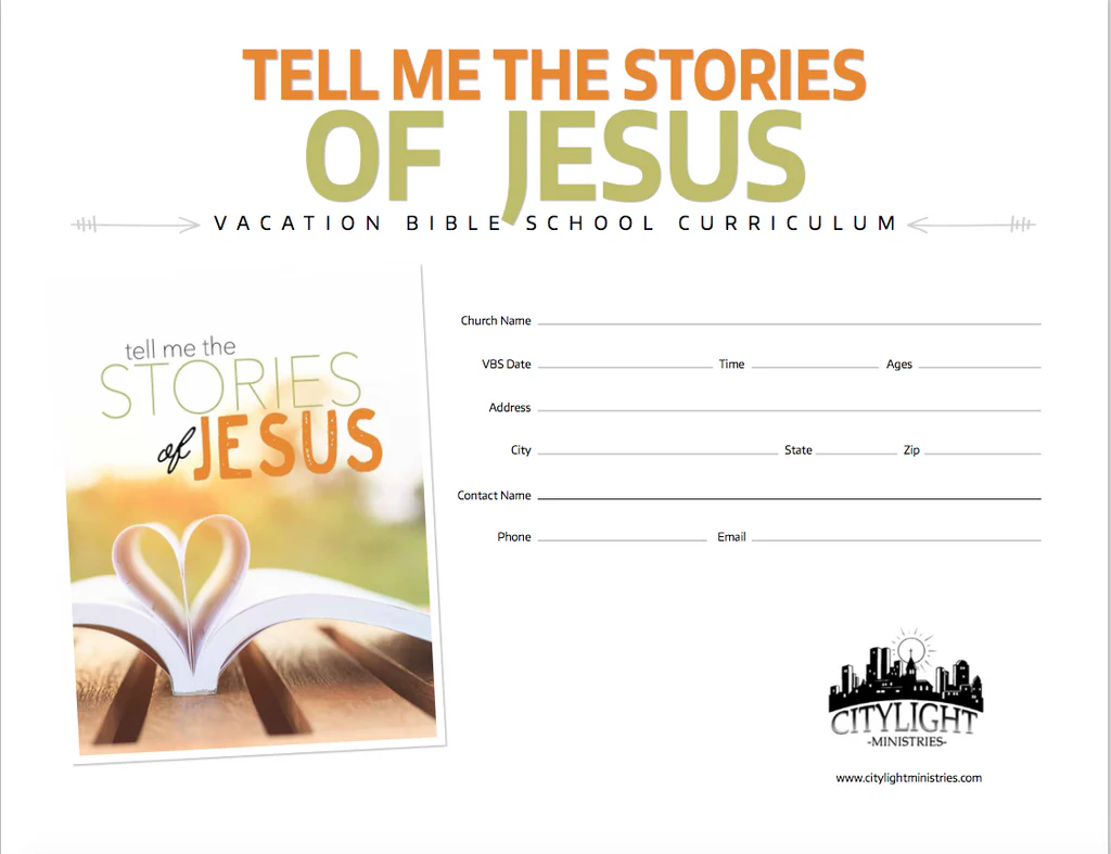Tell Me the Stories of Jesus VBS Curriculum poster & invitation